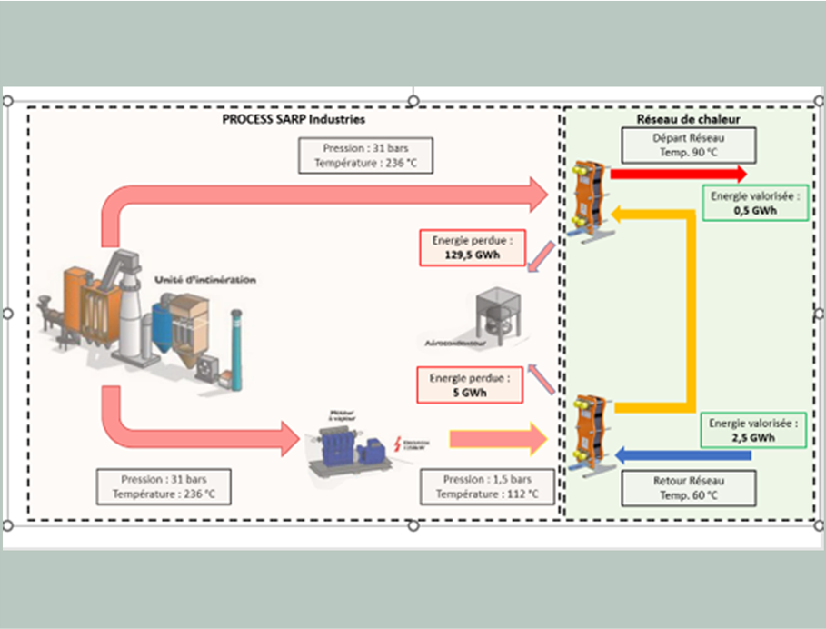SARP Industries envisage de valoriser une partie de la chaleur fatale de la déchetterie de produits industriels qu’elle exploite en vue de fournir de la chaleur décarbonée à des prospects, dont IKEA qui va construire un entrepôt de 72 000 m² (1 300 000 m3 à chauffer).